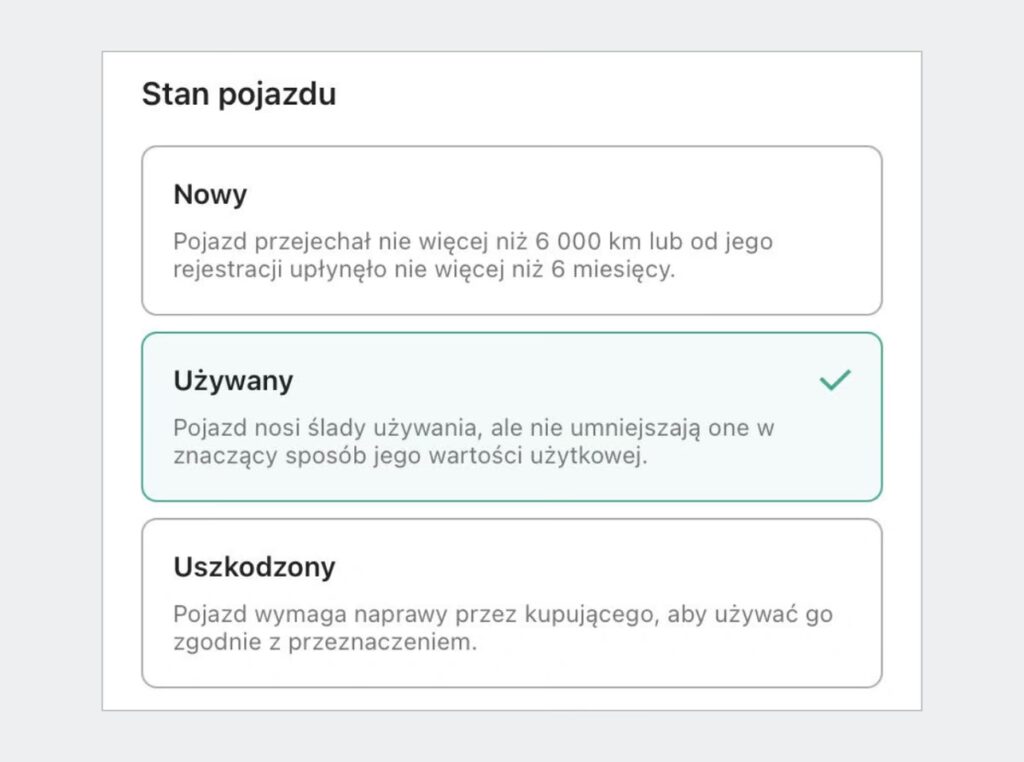 W przypadku ogłoszeń z opcją „kup teraz” lub licytacją, opłata za sprzedaż wynosi 7,9% wartości przedmiotu. Wyjątkiem jest kategoria Elektronika, gdzie stawka wynosi 4,9%. Opłata jest pobierana dopiero po dokonaniu transakcji, gdy kupujący zapłaci za przedmiot lub wypełni formularz dostawy.
