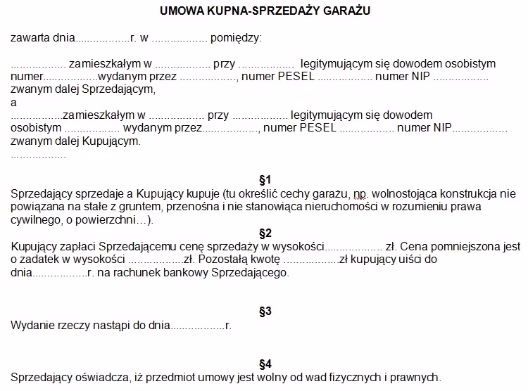 Umowa zakupu to serce transakcji – musi być sporządzona u notariusza. Włącz w nią szczegóły takie jak cena, opis garażu i warunki płatności. Kluczowe dokumenty to akt notarialny własności oraz zaświadczenie o niezaleganiu z opłatami. Przykładowo, jeśli garaż jest częścią budynku, umowa powinna uwzględniać zgody wspólnoty, co zapobiega przyszłym konfliktom.